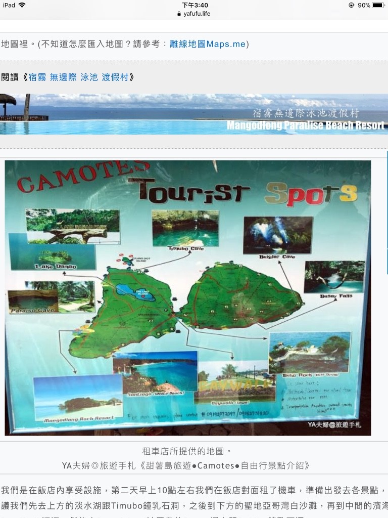 - 在Camotes Island當地所提供的旅遊指示牌,而我們是以機車做為交通工具。
